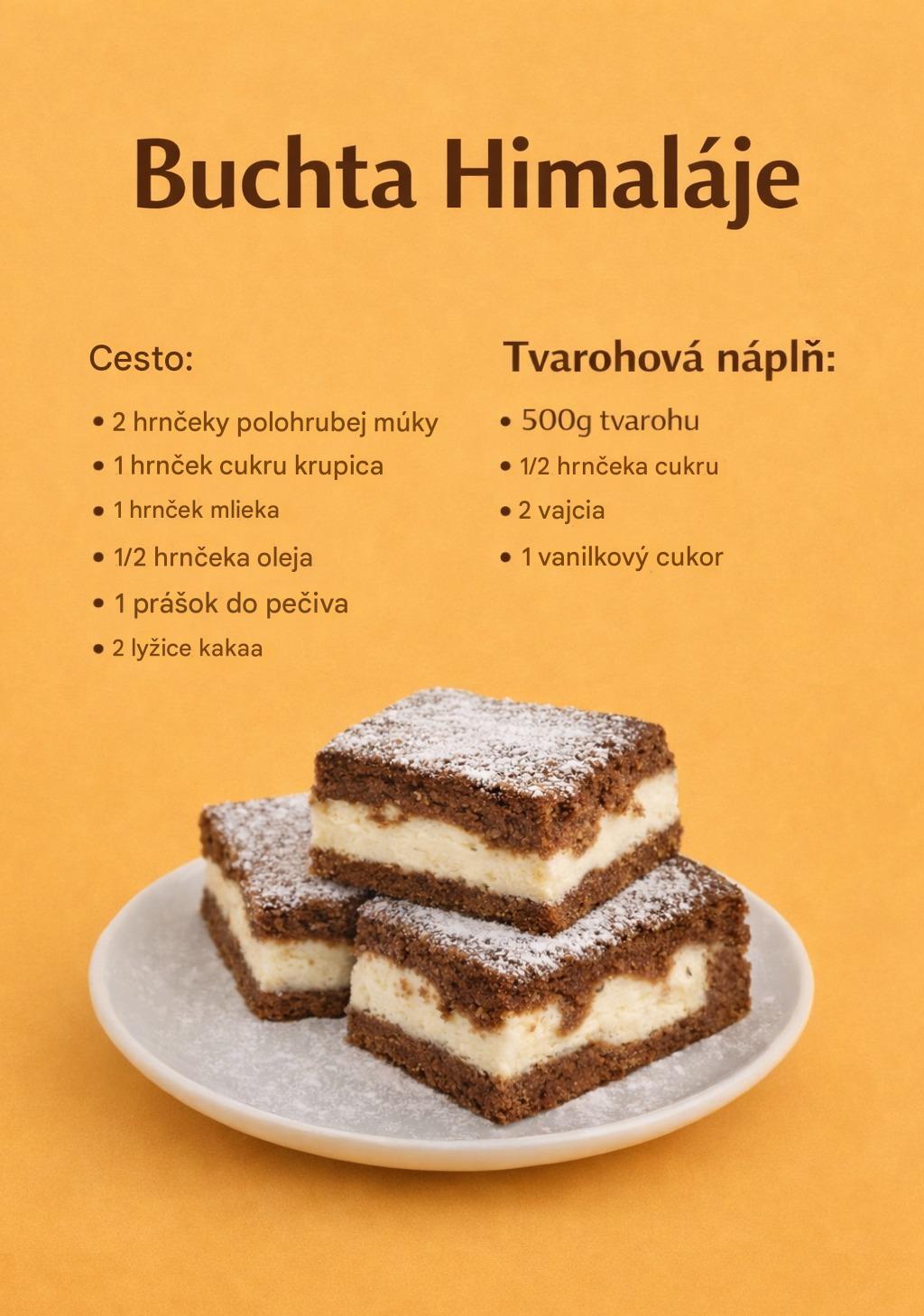 Tvarohová buchta himaláje patrí k múčnikom, ktoré sa pečú v našich domácnostiach už mnoho rokov. Jej kúzlo spočíva v jednoduchej príprave dostupných surovinách. Kombinácia tmavého kakaového cesta a tvarohovej náplne vytvára dokonalú harmóniu chutí. Hodí sa na víkendové pečenie, alebo ako dezert k popoludňajšej šálke kávy.