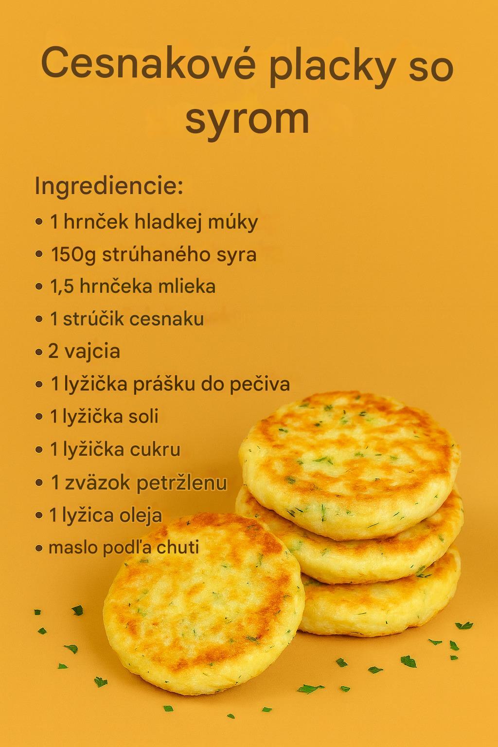 Tieto syrovo-cesnakové placky sú skvelou alternatívou k bežným palacinkám. Hodí sa na raňajky, obed aj večeru. Kombinácia syra, cesnaku a petržlenovej vňate vytvára dohromady sýte a voňavé cesto. Môžete ich podávať samostatne, alebo s domácim dipom. Postup prípravy je rýchly a nenáročný. Zvládne ich pripraviť aj začiatočník.