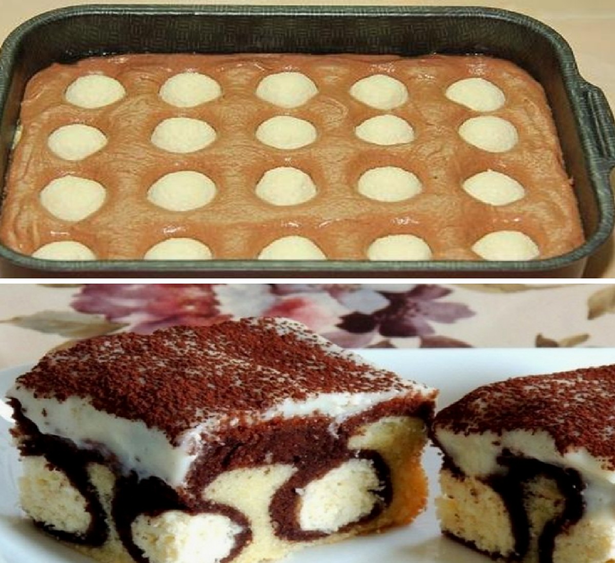Tento krásny a lahodný koláč pôsobí pôsobivo, no jeho príprava je prekvapivo jednoduchá. Kombinuje kakaové cesto, jemné tvarohové guľôčky a vanilkový krém.