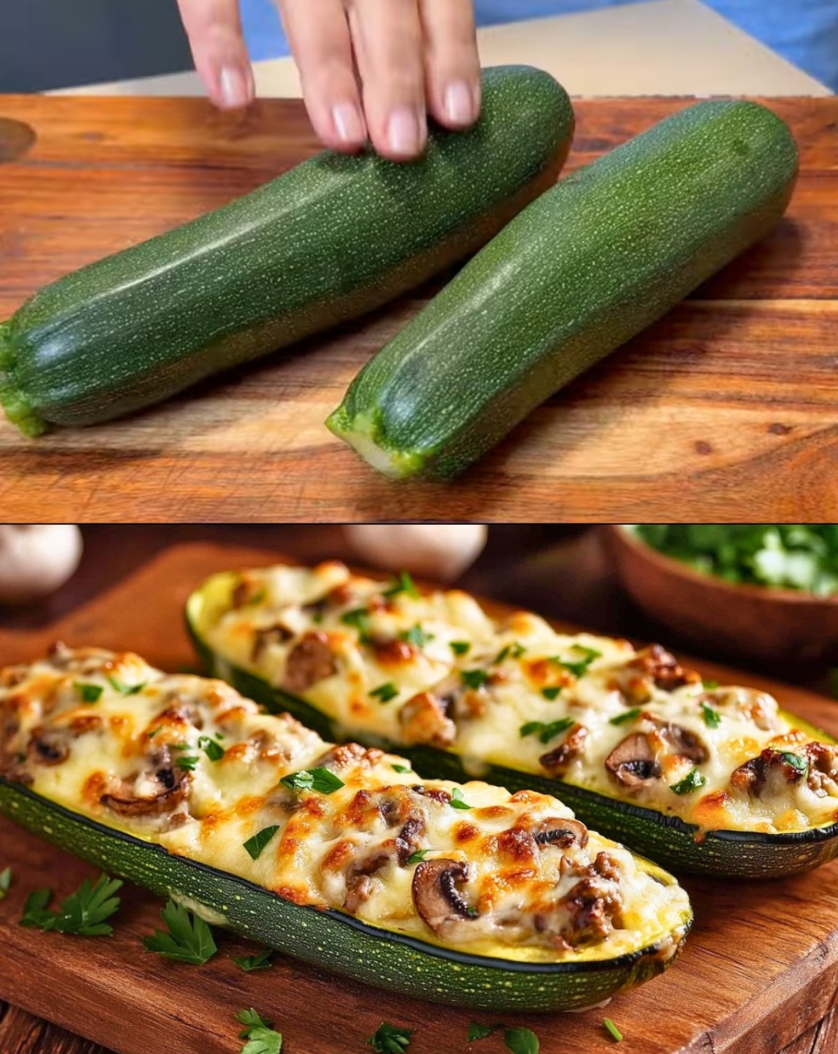 2 veľké alebo 4 menšie cukety (prekrojené pozdĺžne a vydlabané – vnútro si odložte podľa potreby)