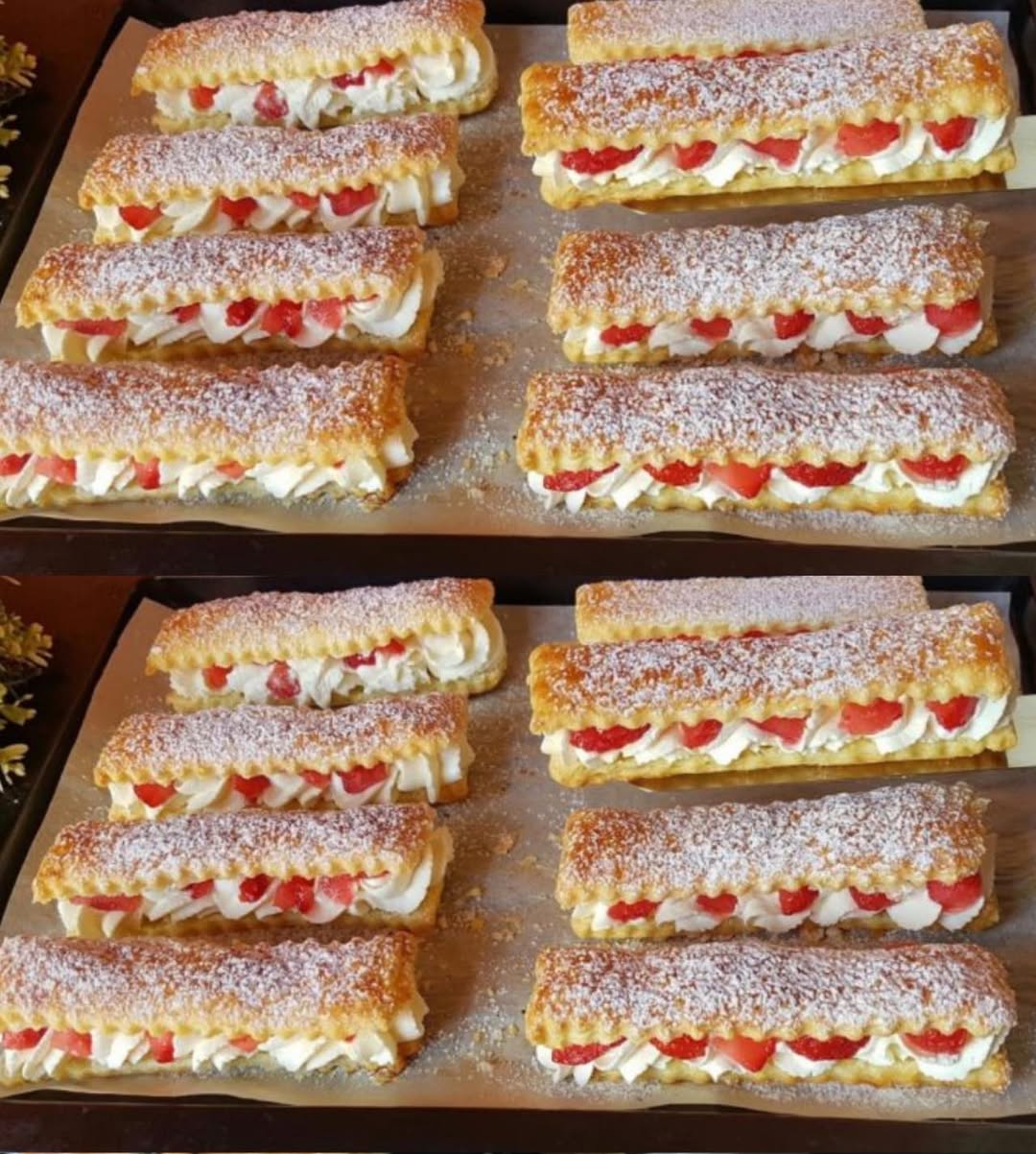 Hľadáte recept na rýchly a chutný dezert ku káve? Tak vyskúšajte tieto jahodové rezy z lístkového cesta. Ich príprava je veľmi jednoduchá. Kombinácia jahôd a krehkého lístkového cesta vytvára dokonalú harmóniu chutí. Mascarpone krém dodáva tomuto dezertu bohatú chuť.