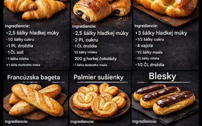1. Croissanty Ingrediencie • 2 ½ šálky viacúčelovej múky • ¼ šálky cukru • 1 PL aktívneho sušeného droždia •…