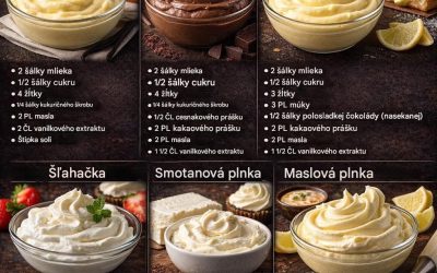 1. Vanilkový krém na cesto Ingrediencie: • 2 šálky mlieka • 1/2 šálky cukru • 4 žĺtky • 1/4 šálky…