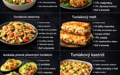 1. Tuniakový šalát Ingrediencie • 1 konzerva tuniaka (scedeného) • 1/4 šálky majonézy • 1/4 šálky nasekaného zeleru • 1/4…