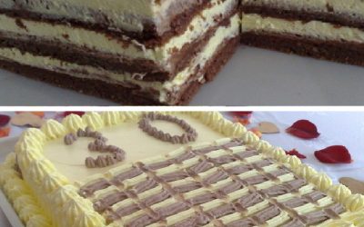 Ingrediencie: Platy: 18 vaječných bielkov 18 lyžíc cukru 24 lyžíc mletých lieskových orechov 3 lyžice múky 6 lyžíc kakaa Krém:…