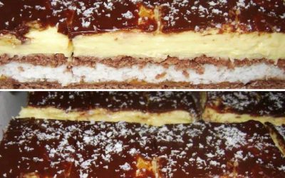 Lahodný koláč s kokosovým a pudingovým krémom a čokoládovou polevou. Tento koláč je stvorený pre všetkých milovníkov kokosu a čokolády!…