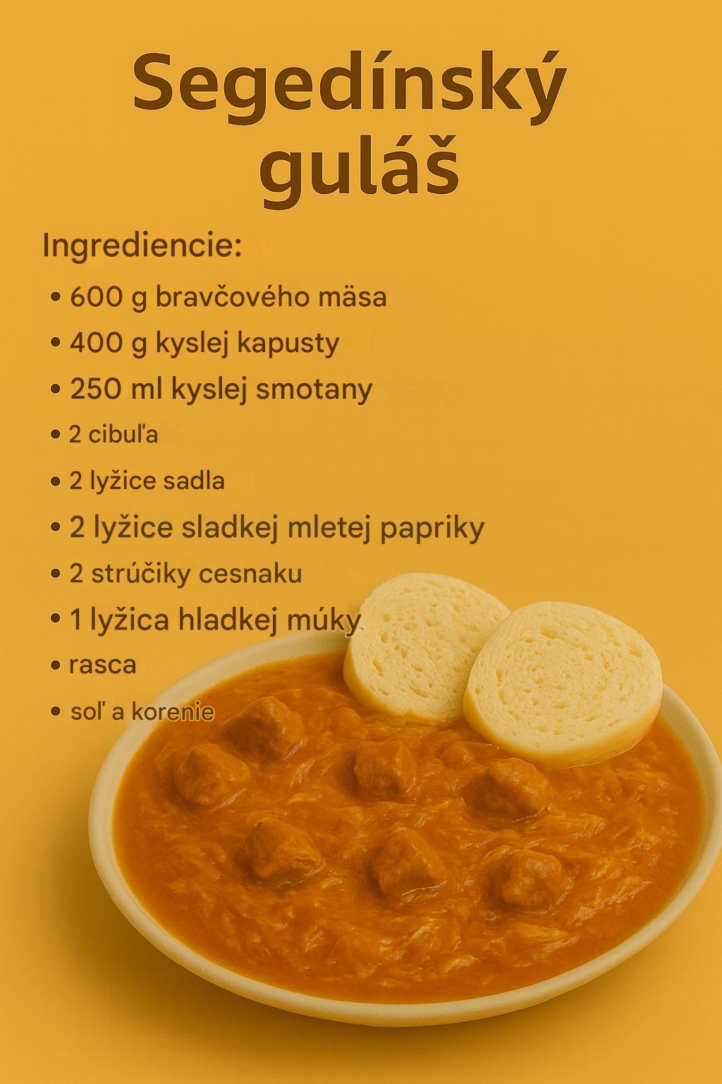 Segedínsky guláš patrí medzi klasiku našej kuchyne. Je veľmi obľúbený pre svoju výraznú chuť a ľahko kyslastý podtón kyslej kapusty. Zahreje vás a zasýti. Je to jedlo, ktoré sa hodí na rodinné stretnutia a oslavy. Obľúbi si ho takmer každý. Kombinácia bravčového mäsa, papriky a kapusty vytvára dohromady dokonalú chuť.